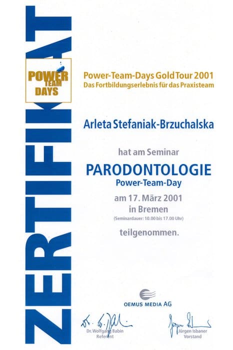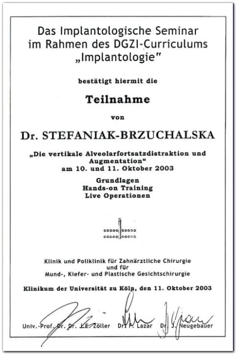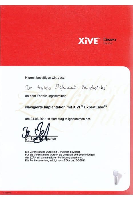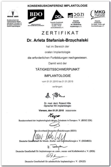 Erlangung des Titels: Schwerpunkt Implantologie, zertifiziert u.a. durch die DGZI |