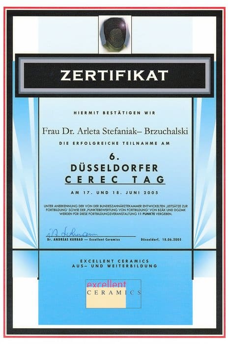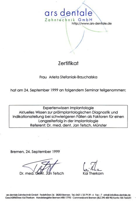 - zertifizierte zahnärztliche Implantologie seit 2005